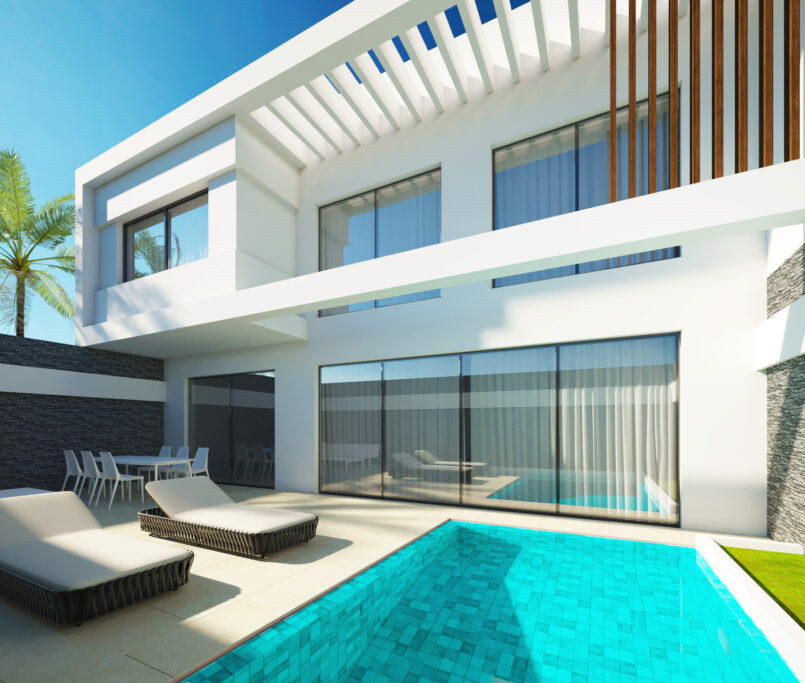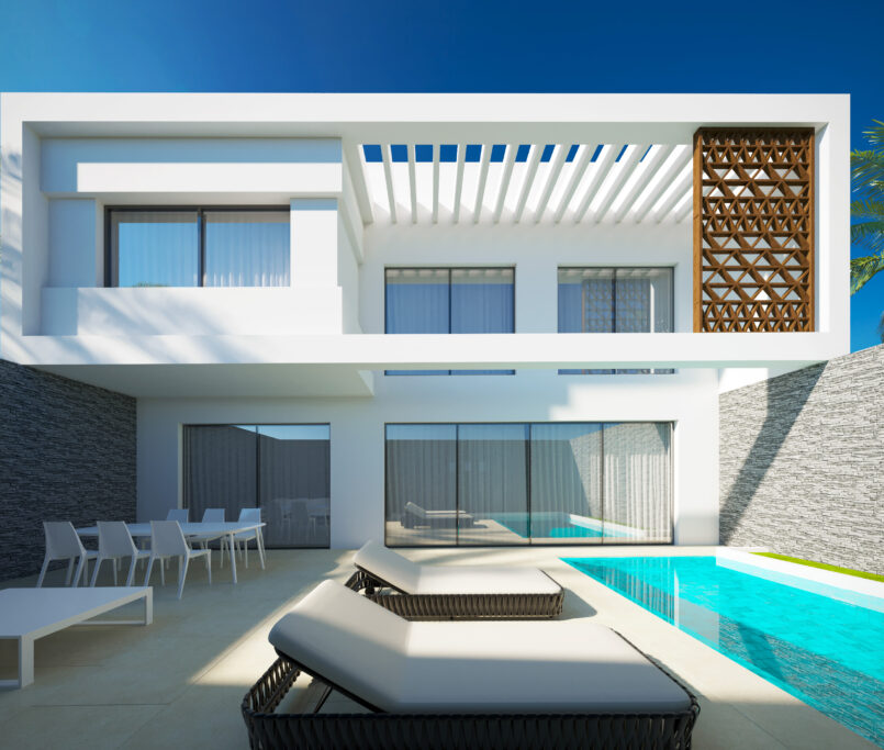The views from this Los Angeles house necessitate an openness with few walls. The architecture is defined by floating, overlapping horizontal floor and roof plates curating specific view axes.